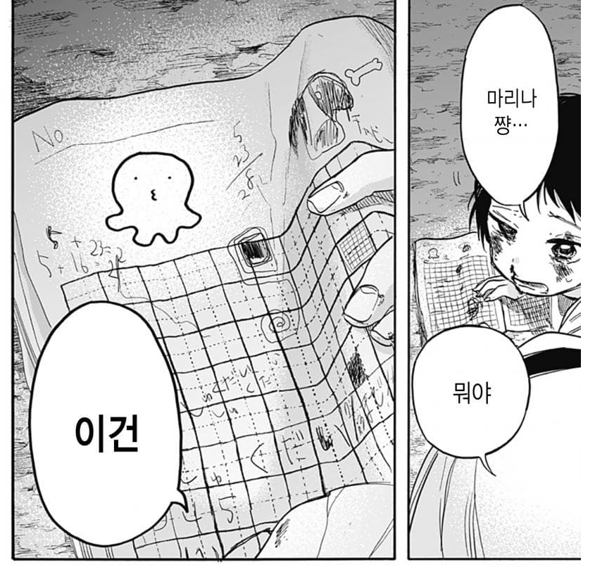 에필로그에서 시즈카와 마리나는 타코피를 닮은 낙서를 보며 이유 모를 그리움를 느끼고, 그 존재의 공감으로 인해 과거와 달리 서로 ‘대화’를 시작하며 화해의 모습을 보여줍니다.