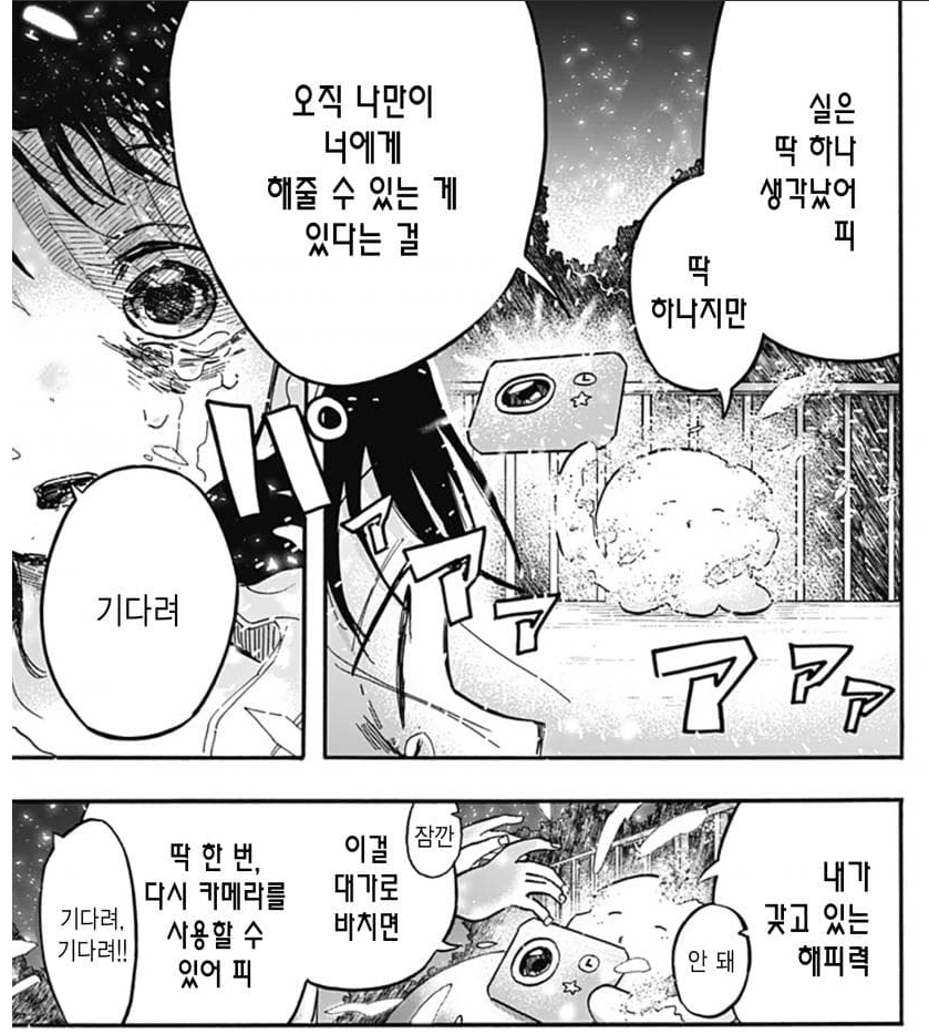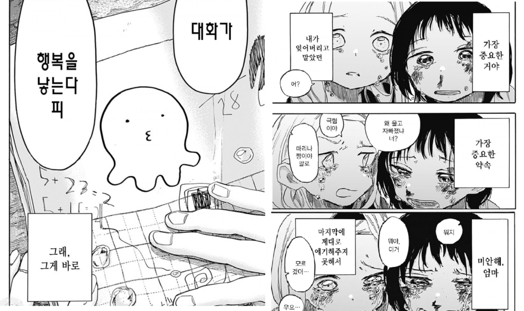 해피별에서 과거회귀환 시점에서 타코피가 페널티로 잃은 것은 기억만이 아닌 행복을 위해 대화를 행하는 것임을 자각합니다. 그리고 엄마에게 건네지 못했던 ‘대화’를 미안해합니다.
