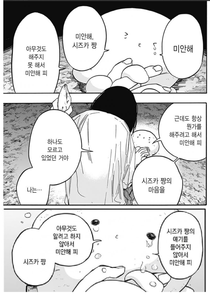 하지만 시즈카 별의 상식에선 각자가 화해의 결과를 내기 위한 대화를 할 수 있는 상황인지, 대화의 준비가 됐는지의 파악과 그에 따른 고려가 없는 ‘일방적 선의’는 빠짐없이 상황을 악화시킵니다.